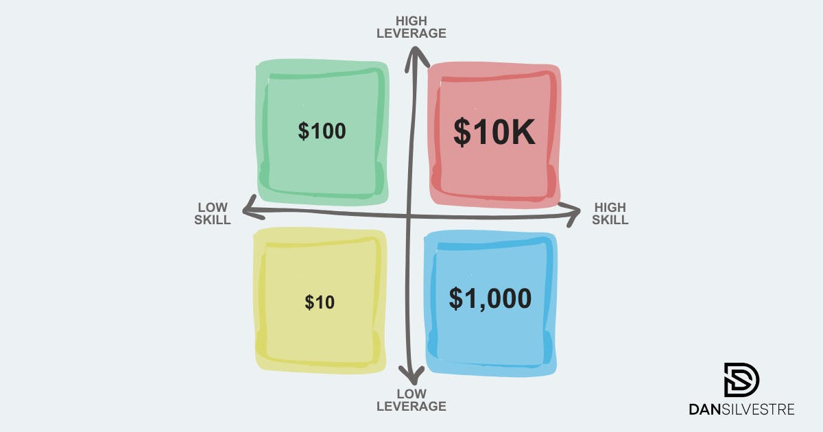 A simple framework I like to use for prioritization is Khe Hy’s $10,000/hr Work Matrix (which I also talked about in my weekly planning system):