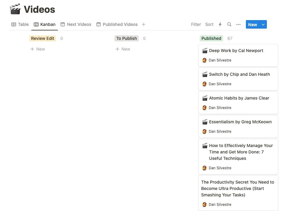 Here’s a Kanban I’ve used previously to organize my YouTube videos:
